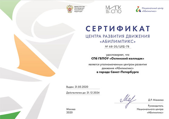 Региональный центр развития движения «Абилимпикс» был создан в 2017 году на базе ГБНОУ «Дворец учащейся молодёжи Санкт–Петербурга» и с 2019 года переведен в СПБ ГБ ПОУ «Охтинский колледж».